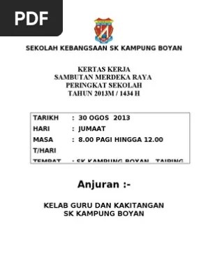 1.0 pendahuluan bulan takbir bulan syawal disebut bulan . Kertas kerja sambutan hari raya aidilfitri di sekolah untuk dijadikan panduan dan rujukan kepada guru. Sekolah kebangsaan kg chabang 24300, kerteh kemaman 2017 majlis sambutan hari raya aidilfitri peringkat sekolah kertas kerja. Kertas kerja program sambutan hari raya aidilfitri peringkat sekolah kebangsaan kampung busut baru (a) tahun 2014 tarikh 8 ogos 2014 tempat kelas tahun 1 . Kertas kerja sambutan hari raya aidilfitri skkr 2016. Kertas kerja program sambutan hari raya aidilfitri peringkat sekolah kebangsaan kampung busut baru · author / uploaded · zaifi ras.